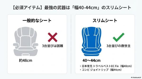 - 【必須アイテム】最強の武器は「幅40cm~44cm」のスリムシート