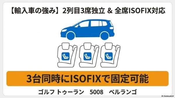 - 【輸入車】「ISOFIX 3台同時使用」ができる唯一の選択肢